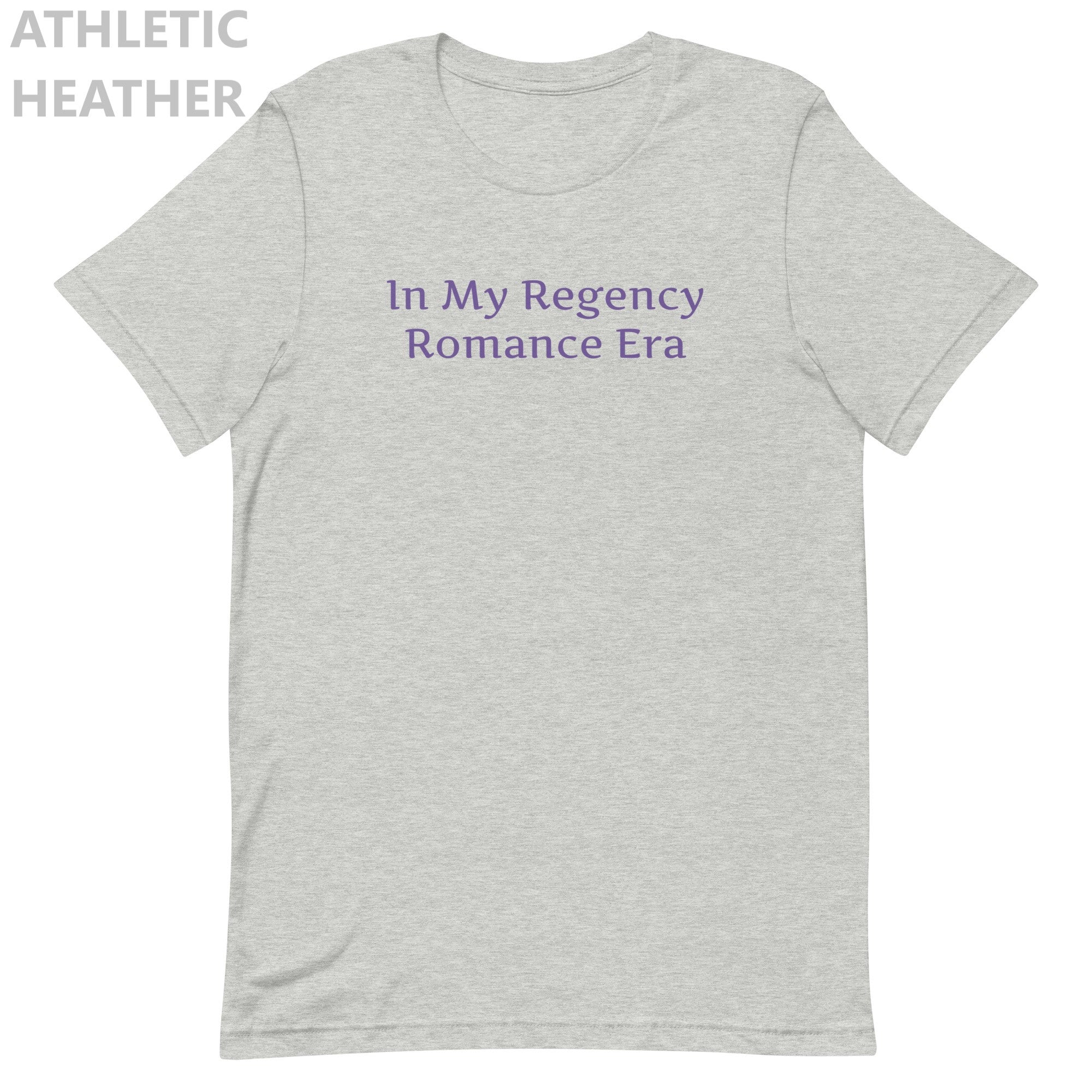 Flaunt your passion for historical romance with our “In My Regency Romance Era” t-shirt, available in athletic heather grey with purple printing.