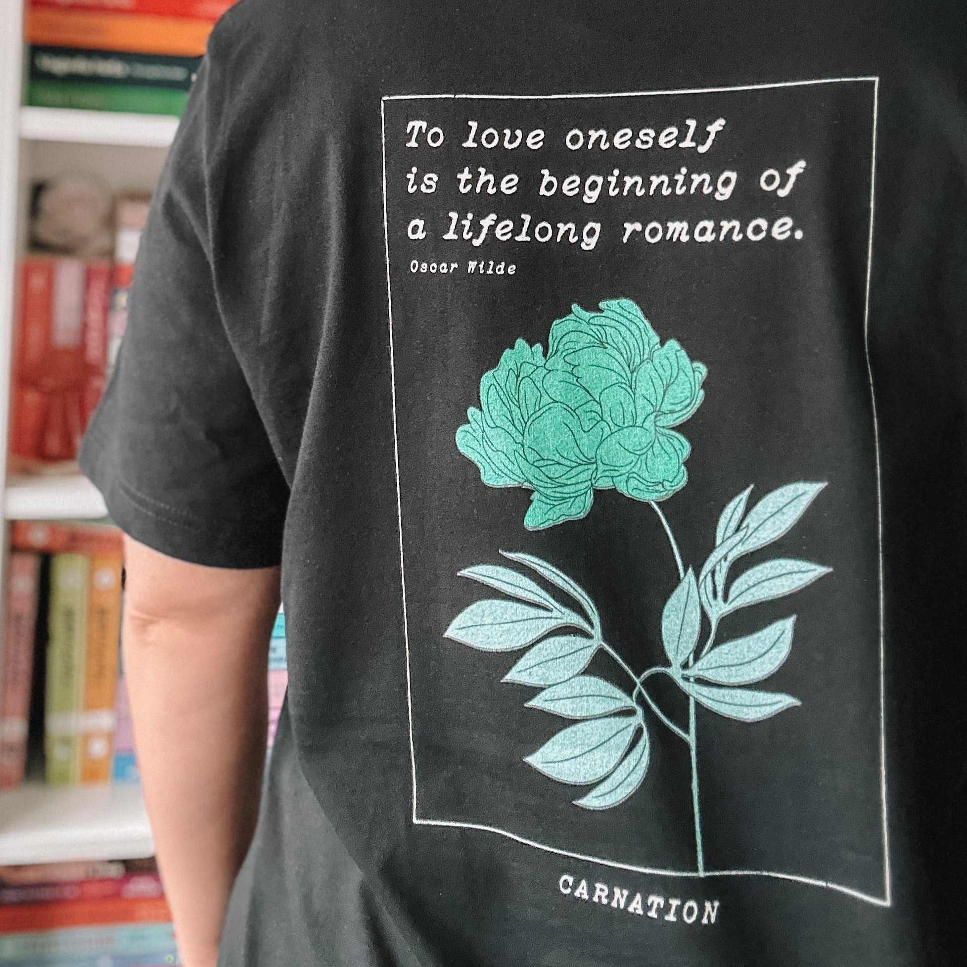 First popularized by Oscar Wilde, the green carnation has been a queer symbol since the late 1800s. Wear Oscar’s words and most famous symbol with Pride, thanks to this beautiful shirt design from Hey Atlas Creative