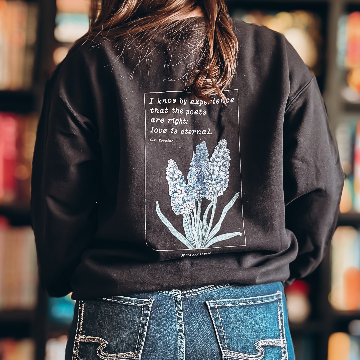 The hyacinth and its significance to the LGBTQIA+ community comes to us from the tragic love story of Apollo and Hyacinthus from Greek Mythology. Thank you to Hey Atlas Creative for this beautiful sweatshirt that continues to further their legacy with the help of E.M. Forster’s immortal words.