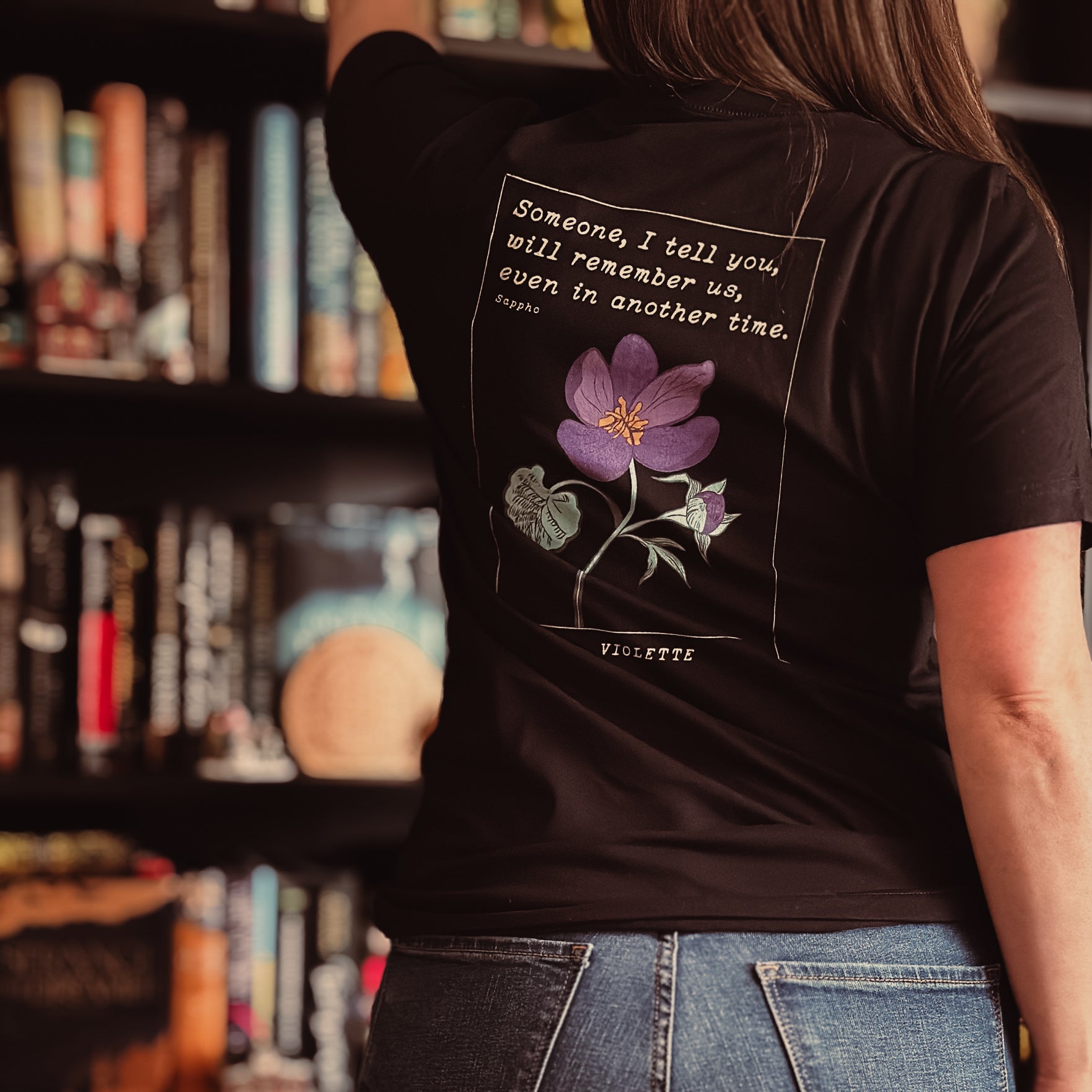The violet (here stylized as Violette) has been associated with the LGBTQIA+ community since antiquity, dating back to Sappho and Ancient Greece. Thanks to this gorgeous shirt design from Hey Atlas Creative, you’re carrying on a legacy.