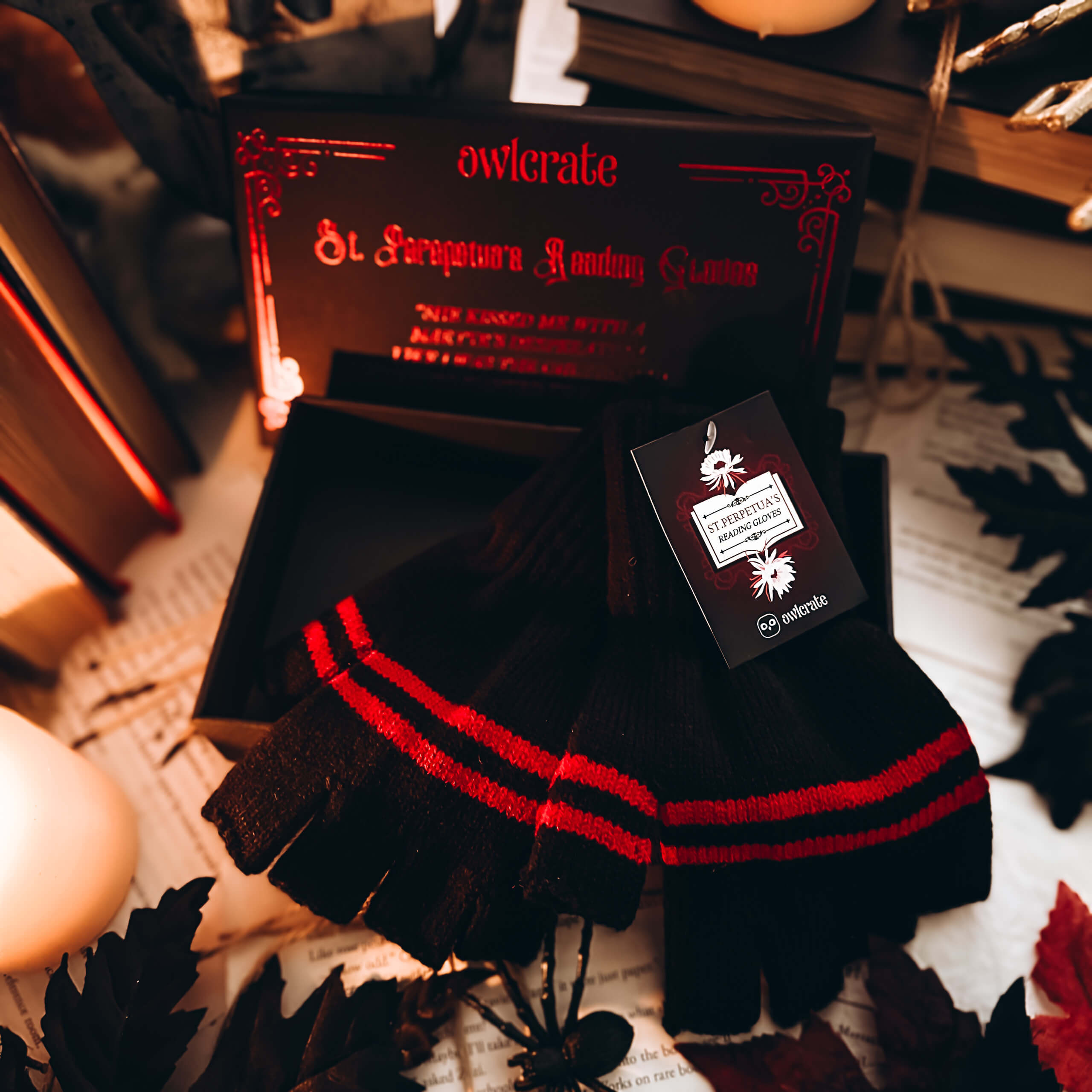 - An Education in Malice-inspired Fingerless Reading Gloves designed by @divineliterary