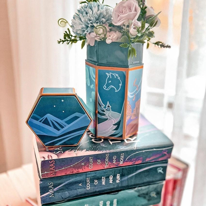 Our next item is sure to bring you closer to the land of the faerie! Our A Court of Thorns and Roses-Inspired Tin is beautifully designed by @istomin__denis, and features art depicting each of the seven courts in the series!