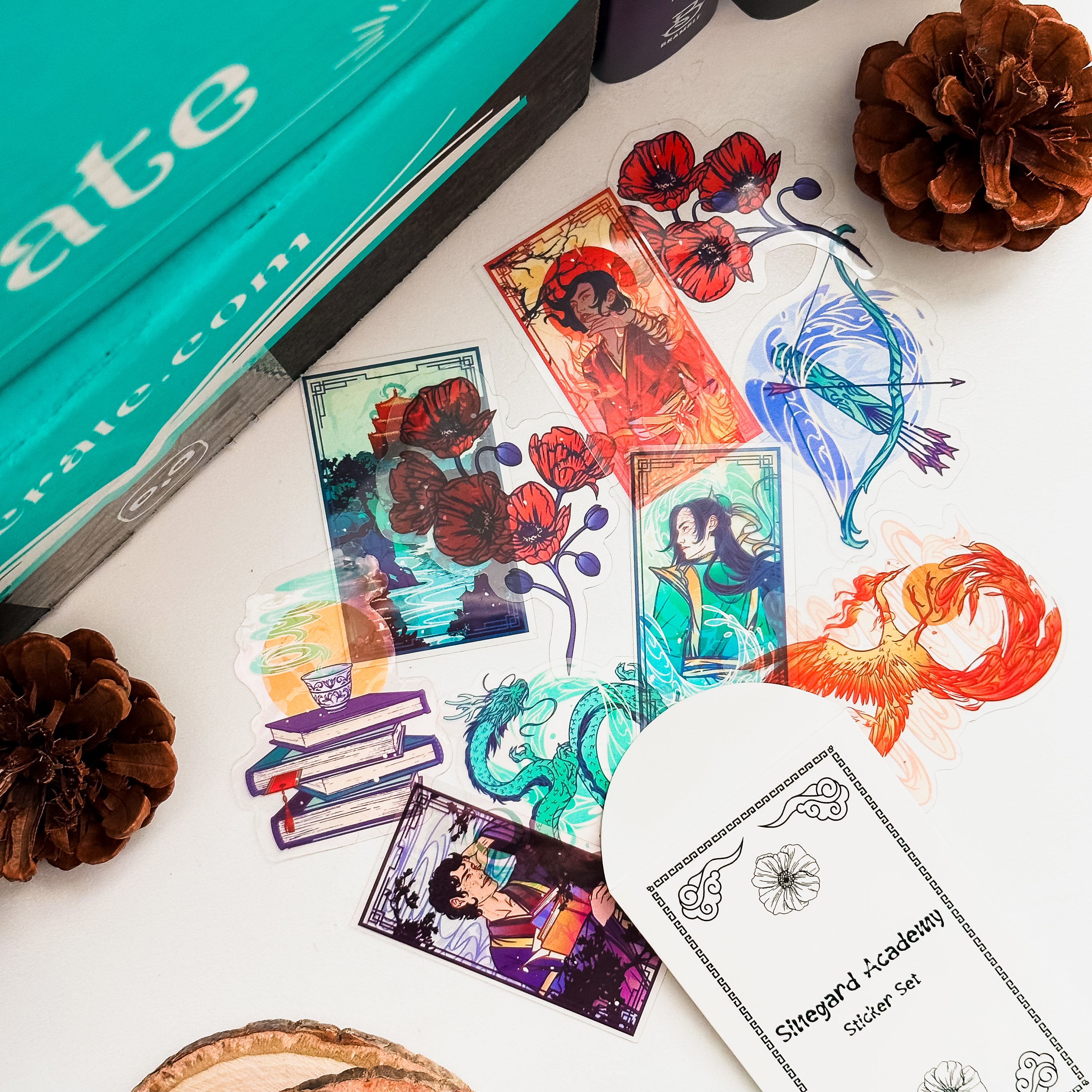 Decorate your items in preparation for training with our Sineguard Academy Sticker Set! Featuring our favorite anti-heroes and elements from The Poppy War, this stunning set of transparent stickers was designed by @annguyenart!
