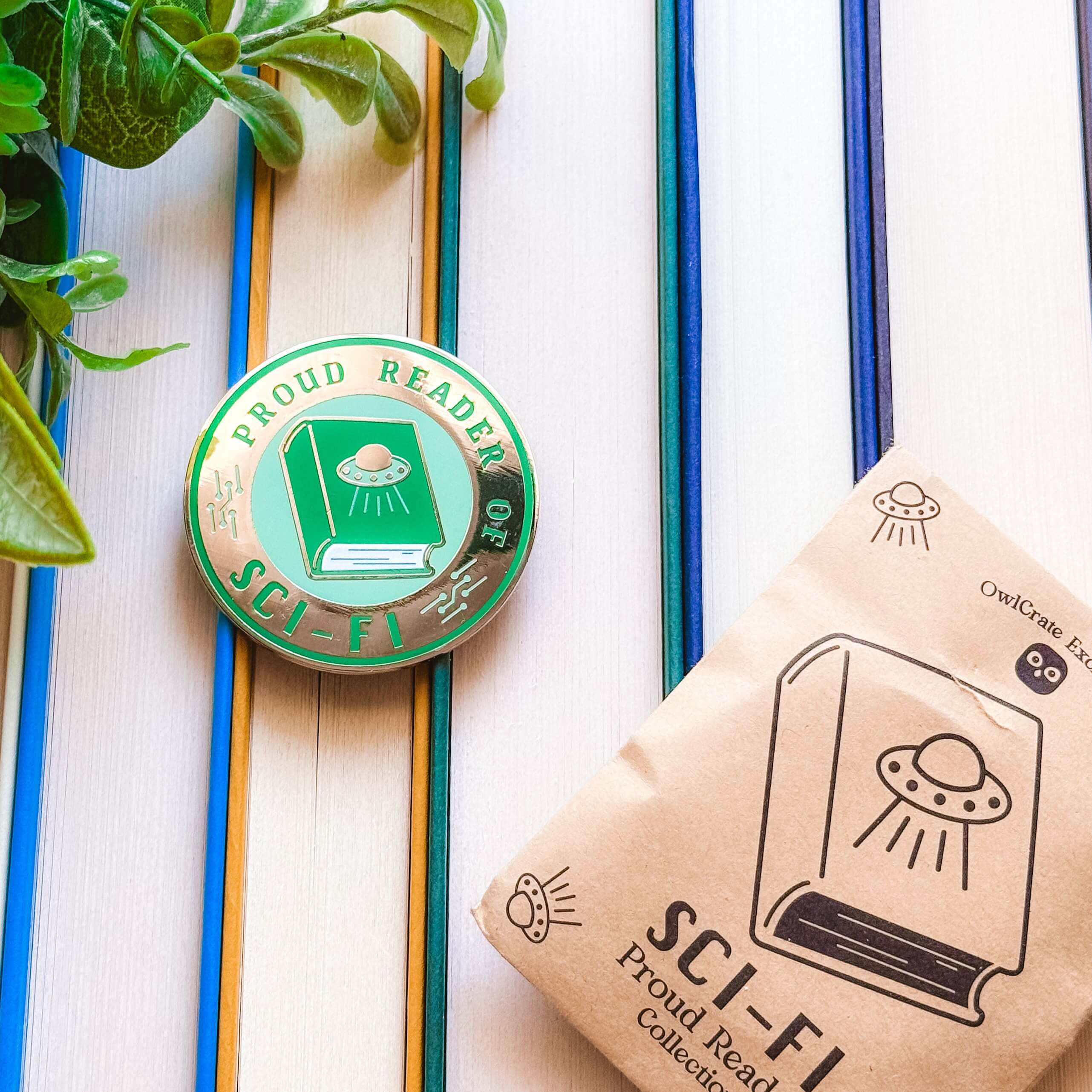 Declare your readership with your new Proud Reader of Sci-Fi Pin. Designed by Hey Atlas Creative.