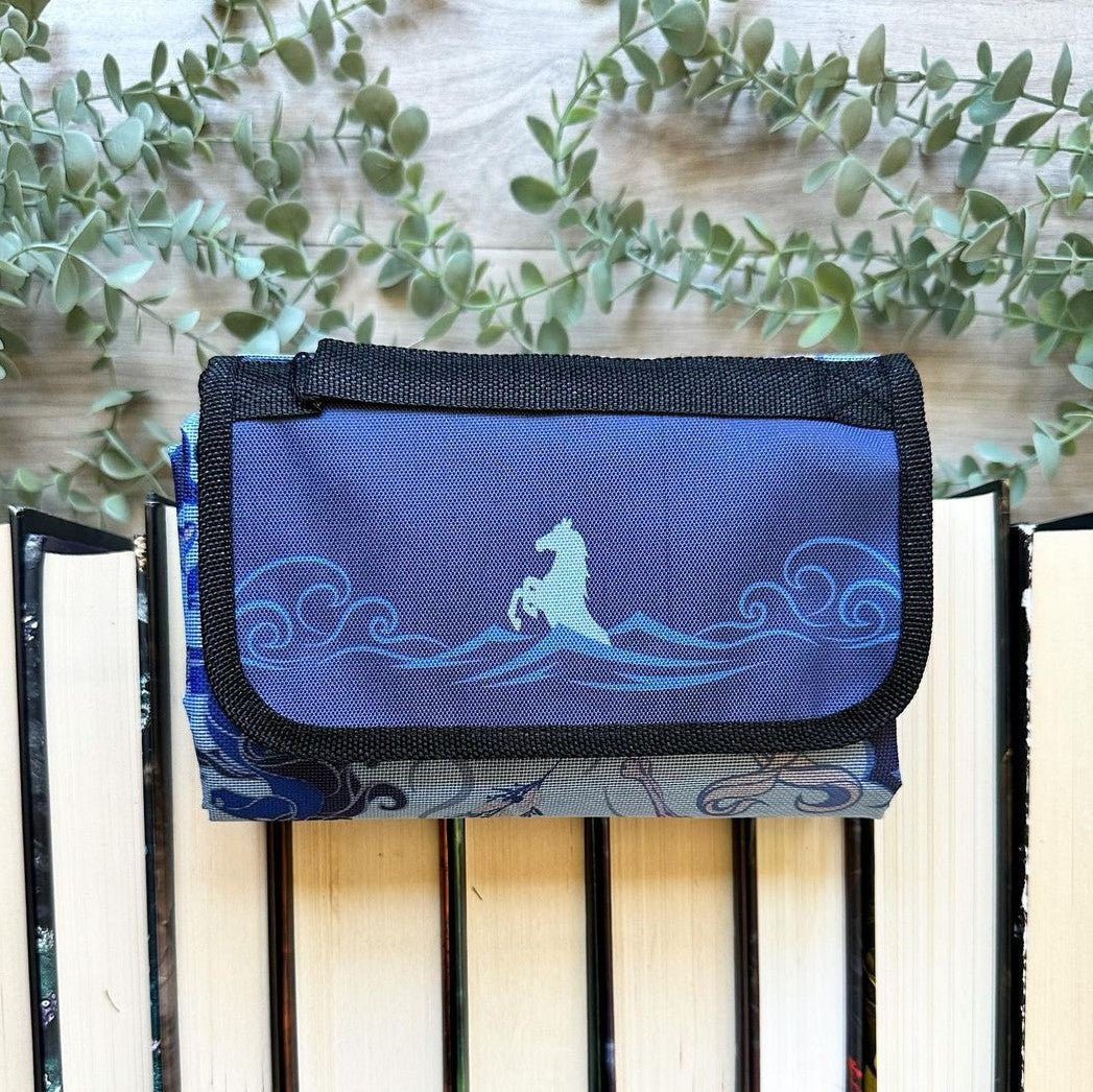 From the sea to the sea, find yourself enjoying a nice day on the island of Thisby with your picnic blanket! This is perfect for fans of The Scorpio Races and features a gorgeous design by @janinelecour and @divineliterary.