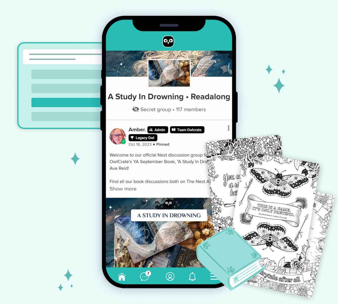The Nest is a first-of-its-kind community app, 100% free for everyone! It is powered by OwlCrate but run by incredible community members like the Words & Whimsy and Bookish Bestie book club moderators.
