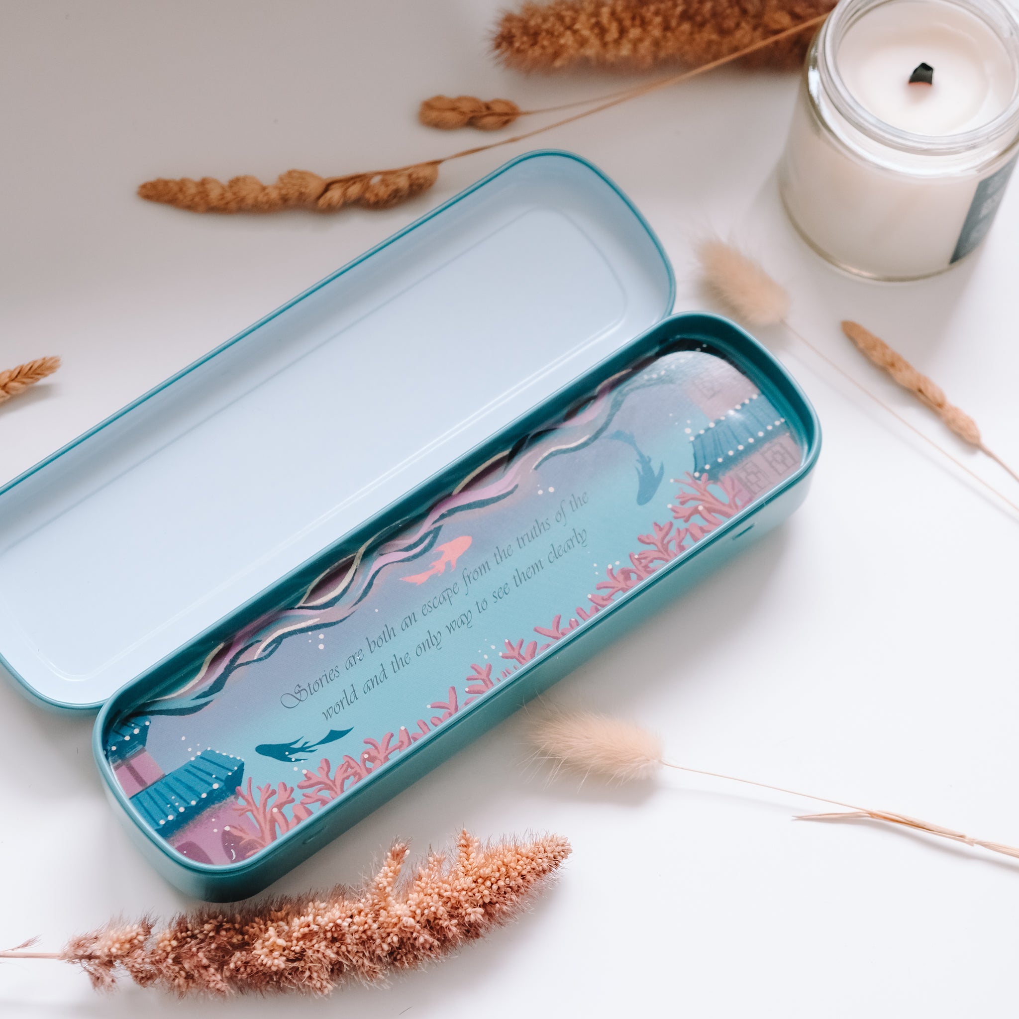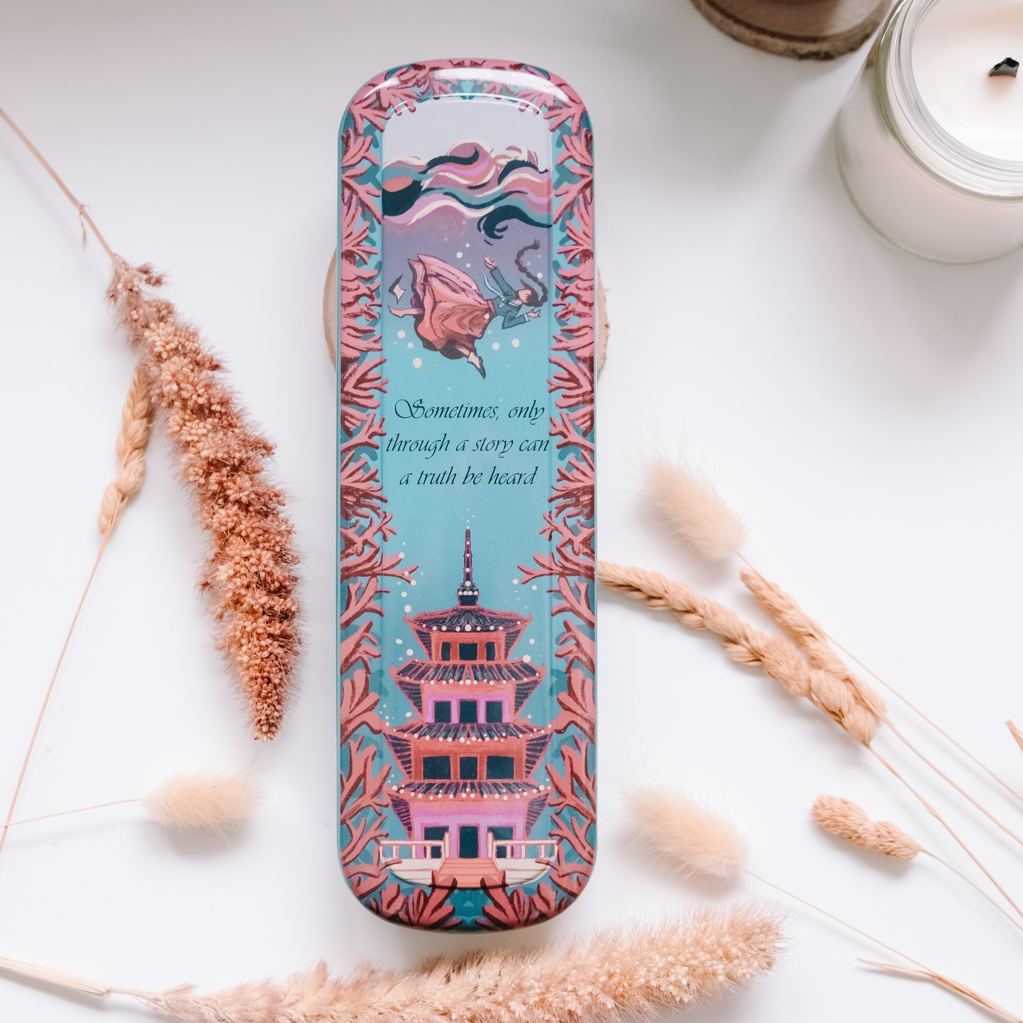Inspired by The Girl Who Fell Beneath The Sea, this Bookmark Tin is the perfect place to hold your pretty bookmarks! This is truly for any bookworm who needs a space to organize or start their own collection. Gorgeously designed by @saiyre.art.