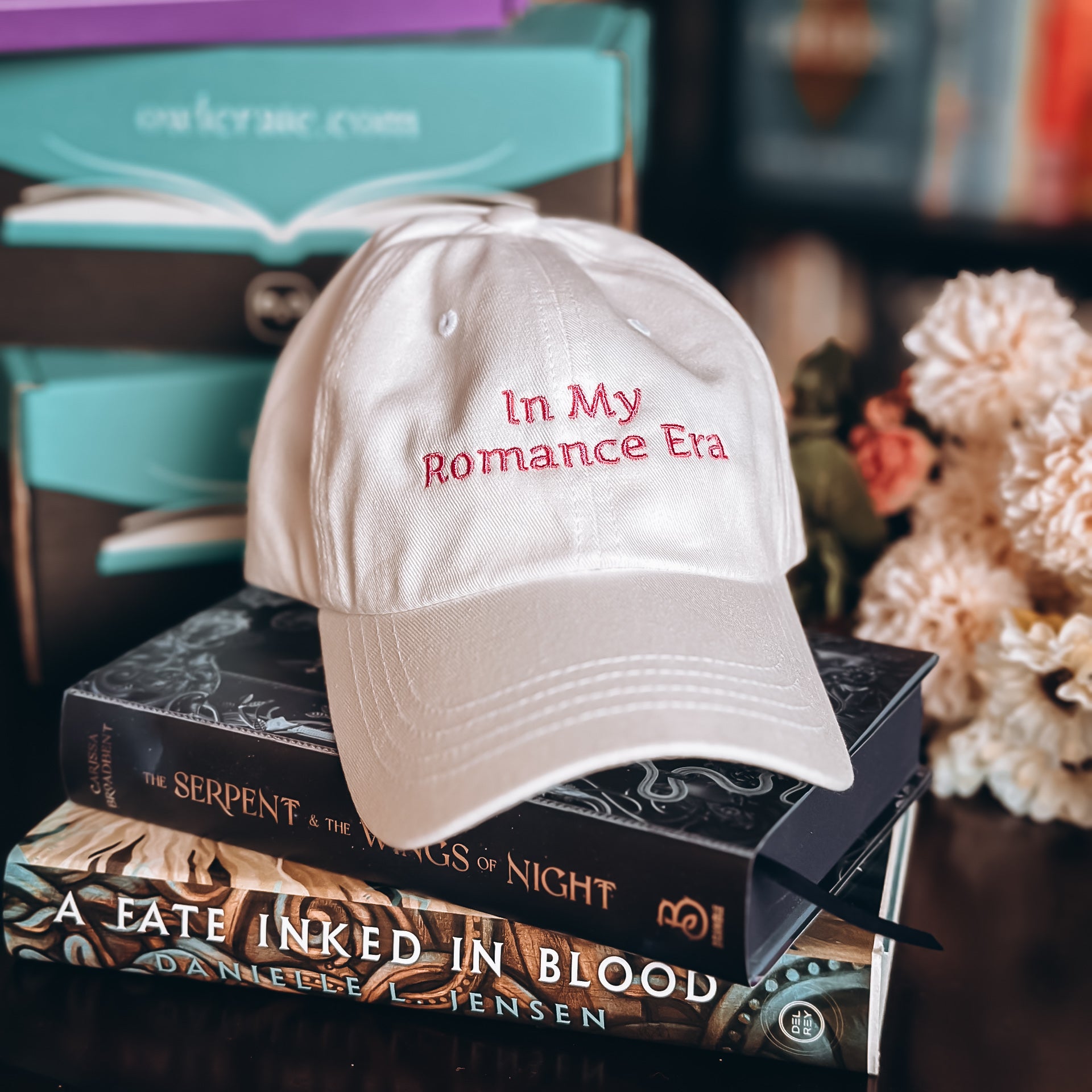 Embrace your inner romantic with our embroidered “In My Romance Era” dad hat, available in white with pink embroidery.