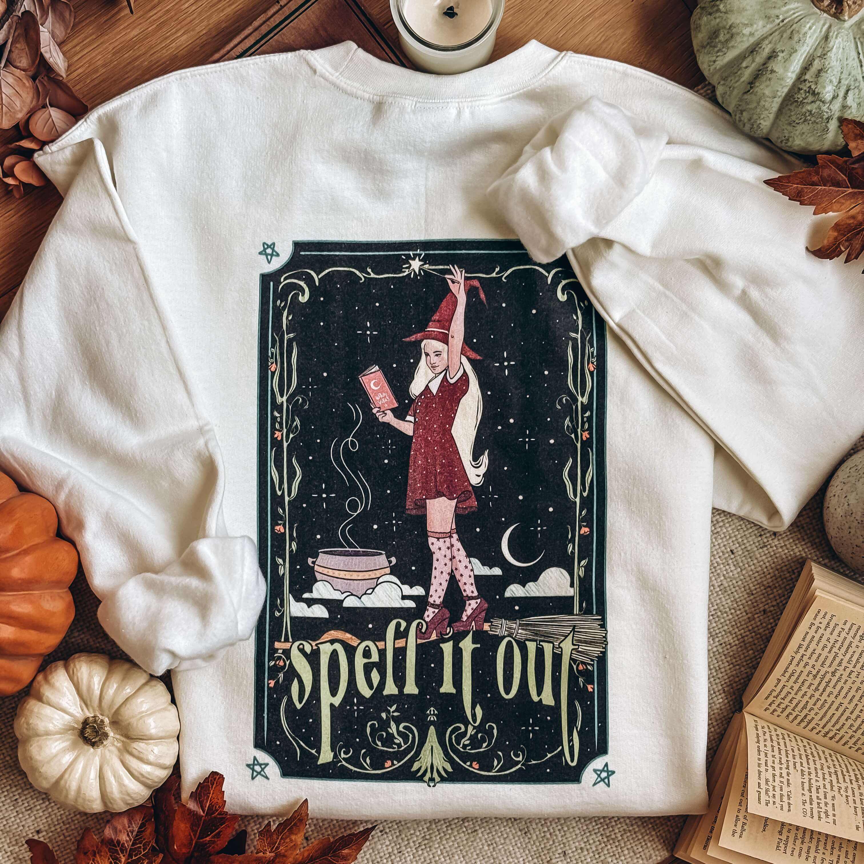 Conjure up the perfect fall vibes with this Spell it Out Witch sweatshirt, designed by @ananovaesart and lettering by Hey Atlas Creative.